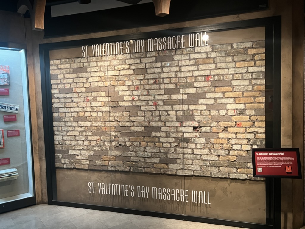 We found the Valentines Day Massacre exhibit with real bricks from the wall an eerie piece of history worth reading about and experiencing at this Las Vegas museum.